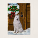 El Samoyed espera en el porche cubierto de nieve para que llegue Santa, vigilando las galletas de Santa. Maravillosos regalos de Navidades, tarjetas de Navidad, franqueo, ropa y más.