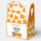 Si no quieres hacer trucos o tratar, ¿por qué no quedarte en hacer temibles películas para compartir dulces con tu novio? Esta caja de regalo de la fiesta de Halloween es perfecta para una noche de cine en casa. También es una linda adición a una noche de fiesta de Halloween. Rellene esta caja con sus dulces favoritos: palomitas de maíz, mezcla de huellas, papas fritas, caramelos, cualquiera de sus inmundos favoritos. Las calabazas sonrientes acentúan los lados, y la palabra "boo" está escrita con dos alegres calabazas naranjas. Una pancarta de maíz dulce recorre la parte superior. Esta adorable caja no da tanto miedo, es una caja de favores para niños de Halloween. La escritura en la caja dice: "¡Tratos para mi novio!".