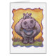 Tarjeta de Nota de Hippopótamo Cute de Desfile Animal creada por Imagine That! El diseño es para el lado divertido de usted, presentando nuestro arte original de un lindo personaje de hipopótamo parado en la hierba de la sabana con un cielo amarillo texturado, naranja y una divertida frontera violeta pintada por el talentoso ilustrador para niños, Traci Van Wagoner. Este lindo caballo de agua hace un gran regalo para cualquiera que ame hipopótamos, animales africanos, animales de safari, hipopótamos africanos, caballos de agua y divertidos arte animal.