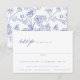 Regency Blue, opción de comida boda RSVP. Barrera Chinoiserie Jardín Vintage Modelo de Floral Backing con la coordinación de la tipografía azul.