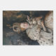 Ya sea que esté envolviendo un regalo para el cumpleaños, un boda o hospedando a un fiesta en el jardín, este encantador papel de envoltura -inspirado en pinturas al óleo antiguas- añadirá un toque de elegancia. Este diseño presenta un retrato de una joven noble 👑 envuelta en una capa de armiño, sosteniendo delicadamente un conejito 🐰 sobre un rico fondo atmosférico. La obra recuerda a una pintura al óleo de época, impregnada de simbolismo y elaborada con texturas de pinceles meticulosas que resaltan los pequeños detalles y texturas de la obra. La mirada de la noble mujer engaña al espectador, exuberando una confianza y una gracia tranquilas que se ven reforzadas por la intrincada corona adornada con joyas y piedras preciosas. Sus ojos, brillando con inteligencia y profundidad, crean una íntima conexión entre el sujeto y el observador. El lujoso encaje y las suntuosas telas de su vestimenta se presentan con un extraordinario detalle, mostrando la opulencia de su estatus y de la época. La textura de la capa de armiño se representa tan finamente que casi se siente tangible, y el conejo que sostiene se retrata con una suavidad que contrasta con la riqueza de sus prendas, agregando un toque de inocencia y ternura a la composición general.