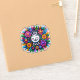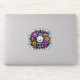 Pegatinas brillantes y alegres llenas de una variedad de flores y follaje coloridos rodean una cara sonriente.