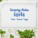 Reglas de camping en una toalla de cocina