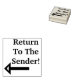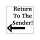 Este diseño básico de sellos de goma incluye el mensaje "¡Regresar al remitente!", junto con una forma decorativa de flecha. Podría utilizarse para indicar que el correo postal recibido se ha entregado a la dirección equivocada o que el destinatario es desconocido, y debe devolverse al remitente.