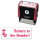 Este diseño básico de sellos de goma incluye el mensaje "¡Regresar al remitente!", junto con un símbolo de flecha en bucle. Podría utilizarse para indicar que el correo recibido se ha enviado a la dirección equivocada o que el destinatario es desconocido y debe devolverse al remitente.