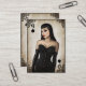 Reina modela del estilo del diseño adaptable de la tarjeta de visita de los corazones con efectos del grunge. Ofrece un ilustracion de una mujer joven que lleva un corsé negro, y un marco floral adornado.