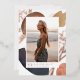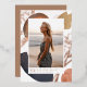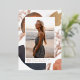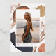 La invitación de graduación fotográfica simple y moderna incluye una foto vertical sobre un fondo de formas de acuarela de color neutro y salpicaduras abstractas de tono de tierra con acentos de Relieve metalizado oro rosa. Personalice con el nombre, la escuela y el año de clase de su graduado. Añade un mensaje personal a la parte posterior, junto con una foto adicional.