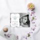 Añade simplemente el color de tu preciosa foto en blanco y negro, así como los nombres de familia y los detalles de tu nacimiento, y personaliza este dulce azul y blanco con el texto real de Relieve metalizado plateado fleur de lis vintage Christian cross design para anunciar a tu recién nacido. Diseño original de Holiday Hearts Designs (todos los derechos reservados).