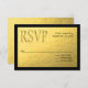 La tarjeta de respuesta RSVP clásica, sencilla y de moda presenta un fondo de Relieve metalizado falso de pepino dorado con un borde negro grueso. Utilice el botón PERSONALIZAR de TI para agregar su texto. ¡Están disponibles las invitaciones a bodas coincidentes, las tarjetas Save the Date, las tarjetas de mesa, los sobres, los sellos postales y más! Si tiene alguna pregunta o desea que aparezcan otros artículos de este diseño, póngase en contacto con el diseñador: cheryl@cheryldanielsart.com. Diseño de Cheryl Daniels © 2015.