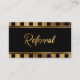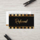 Este elegante diseño presenta un llamativo Relieve metalizado de oro falso y acentos negros audaces. Los bordes superior e inferior de una franja vertical audaz aparecen por encima y por debajo de una banda ancha negra a través del centro, que está bordeada por tiras de oro dobles. En el centro del diseño, en un bonito, el tipo de letra de escritura moderno, es un superpuesto gráfico de tipografía que dice "Remisión". Esta capa gráfica de texto fue embellecida con el mismo efecto dorado que usé en las franjas y bordes. En la parte posterior he configurado todos los campos de plantilla que necesitará para ofrecer los detalles y términos a sus clientes. Utilice los espacios proporcionados para añadir sus propios detalles y realizar los cambios necesarios en la redacción. También puede hacer clic en el personalizar si desea cambiar las fuentes, tamaños o reposiciones de cualquier elemento. // Ideal para propietarios de salones de belleza, estilistas de cabello, esteticistas, manicuristas y técnicos de uñas, maquilladores, masajistas, entrenadores personales, y muchos otros en industrias de sanación y servicios personales que aprecian honrar referencias de negocios. // Por favor, no dude en ponerse en contacto si tiene solicitudes especiales o necesita ayuda para personalizar. // Diseñado por Melody Watson para la Muserie de Papel.