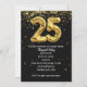Globos dorados de milar con estrellas de confetti en negro para la fiesta de cumpleaños 25. El texto se puede editar para una invitación de fiesta de aniversario