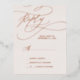 Esta romántica tarjeta RSVP de Relieve metalizado dorado rosa es perfecta para un simple boda. El moderno diseño clásico presenta vistosos remolinos y florituras con una magnífica y elegante tipografía con letras a mano en lujoso Relieve metalizado de oro rosa.