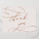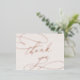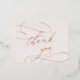 Esta romántica tarjeta de agradecimiento de Relieve metalizado dorado rosa es perfecta para un simple boda. El moderno diseño clásico presenta vistosos remolinos y florituras con una magnífica y elegante tipografía con letras a mano en lujoso Relieve metalizado de oro rosa. La parte posterior está en blanco para que puedas escribir a mano un mensaje personal. Estas tarjetas se pueden usar para un boda, una ducha de novia o cualquier evento especial.