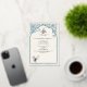 Invitación de boda islámica elegante: arco floral arabesco en azul profundo sobre fondo de marfil suave | Recuerdo personalizado de Nikkah.