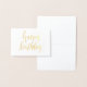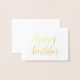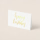 Esta hermosa tarjeta de cumpleaños con letras a mano muestra las palabras "feliz cumpleaños" en el Relieve metalizado de oro en la parte delantera. ¡El espacio que queda en blanco deja mucho espacio para que escribas tu propio mensaje!