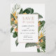 Boda pulsada por Relieve metalizado Guardar la fecha para un ambiente tropical. Cuenta con flores naranjas tropicales y una exuberante vegetación. Incluya su foto en el reverso o elimine y deje en blanco. Edite con su texto y seleccione entre tres colores de Relieve metalizado diferentes, incluyendo oro, plata y oro rosa.