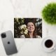 Celebra tu graduación con esta simple invitación con fotos que incluye el Relieve metalizado de oro guionado con tassel. Opciones para la foto de atrás con detalles de la fiesta de graduación