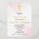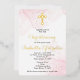 Invitación religiosa con mármol rosa y dorado. Texto con hoja para bautizo, nombre y cruz. Puede ser cambiado para bautizo, bautismo, comunión, confirmación.