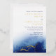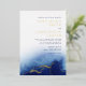 Estas elegantes invitaciones de boda con acuarela azul y dorado con lámina son totalmente personalizables y perfectas para una boda contemporánea.