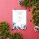 Relieve Metalizado Invitación de boda con acuarela del horizonte de C