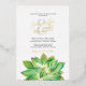 Relieve Metalizado Invitación de Boda con Hojas Suculentas en Acuarel