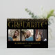 Muestre el gran día de su graduado con estilo con nuestras invitaciones personalizadas para fiestas de graduación con fotos. Con espacio para tres imágenes impactantes y texto personalizado con lámina dorada glamurosa, es un recuerdo además de una invitación. El reverso muestra los detalles importantes de la fiesta. Disfrute del control creativo total eligiendo sus estilos de fuente preferidos con nuestra opción 'personalizar más'. Clase de 2025, ¡es hora de celebrar!