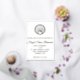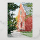 Invitación de bautizo de papel de aluminio con concha de vieira y acuarela de iglesia en la parte posterior.