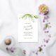 Esta invitación de boda verde presenta sus nombres en una tipografía de escritura a mano con lámina de estilo con detalles del evento en una fuente clásica serif gris carbón sobre un fondo blanco crujiente con un borde superior de mis hojas botánicas originales pintadas a la acuarela en tonos de salvia y verde. La tarjeta de invitación se revierte a un color azul polvoriento complementario. Una elección elegante pero elegante para bodas de jardín informales. Para ver el conjunto completo de papelería de boda de Victoria Grigaliunas de DoTellABelle visite www.zazzle.com/dotellabelle