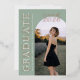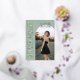 Este anuncio de graduación de foto en verde salvia combina la tipografía serif clásica con un diseño limpio y moderno para un aspecto refinado y editorial. La letra en marfil suave y los acentos de foil de oro rosa destacan el nombre del graduado, el año de graduación y la escuela, mientras que el diseño mantiene el enfoque en la foto principal. Totalmente personalizable, esta plantilla te permite personalizar todos los detalles del texto y subir tu propia imagen en la parte frontal. La parte trasera coordinada presenta un fondo de salvia a juego con espacio para un collage de cuatro fotos, ideal para compartir retratos adicionales de último año. Un anuncio de graduación atemporal y contemporáneo diseñado para aquellos que aman los tonos neutros, el diseño elevado y el lujo discreto. © Kimbellished, LLC