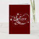 Una hermosa tarjeta roja con Relieve metalizado plateado Diseño de Believe. Introduzca su propio mensaje dentro.