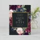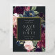 Nuestra boda Plum Blossom salva los marcos de fecha de sus detalles bodas con un elegante borde cuadrado de frondosos follajes acuáticos y flores de rosa rosa rosa rubí y azul polvoriento, con un verdadero guarnecido de Relieve metalizado dorado en un rico fondo de carbón.