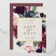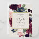 Nuestra boda Plum Blossom salva los marcos de fecha de sus detalles bodas con un elegante borde cuadrado de color de agua exuberante y flores de rosa rosa rosa rosa, púrpura borgoña y azul polvoriento, con un verdadero guarnecido de Relieve metalizado dorado sobre un rico fondo de marfil blanco.
