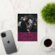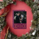 Tarjeta fotográfica navideña de Navidades festivos con marco decorativo curvilineal de copos de nieve con acentos de Relieve metalizado dorado.