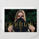 Esta moderna invitación de graduación cuenta con un graduado de la palabra en un moderno tipo de letra serif con acentos giratorios en Relieve metalizado de oro real, lo que crea un ambiente de lujo elevado. Este texto de graduado se encuentra en la parte superior de una fotografía de página completa, destacando al graduado. La parte posterior de esta tarjeta de invitación de graduación tiene dos fotos, perfectas para entonces y ahora, fotos de niños y graduados, junto con un lugar para agregar un mensaje más largo compartiendo los logros del graduado y planes futuros.