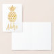 Tarjeta Aloha con lámina dorada con patrón de piña. La tarjeta Aloha con lámina dorada es perfecta para fiestas de bebé con tema tropical, bodas, aniversarios o cumpleaños. El interior de la tarjeta está en blanco para tu mensaje personalizado.