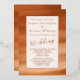 Invitación del Relieve metalizado delantero. Esta invitación a la boda de terracota ofrece una rica mezcla de tonos rojos y arcilla, complementada con elementos de Relieve metalizado brillantes en la parte delantera que le dan un toque lujoso. El diseño abstracto evoca cañones iluminados por el sol, el encanto del desierto y las acogedoras noches de otoño, ideales para celebraciones de moda boho o bodas rústicos modernos.