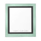 Cuenta con un gran borde exterior de Relieve metalizado fino verde brillante, y un borde negro interior, sobre un fondo blanco. Personalice el bloc de notas con su propio nombre o texto.