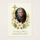 Remember your loved ones in prayer with this beautiful traditional Catholic religious image of a gold crucifix and white lilies. All text and fonts can be modified.