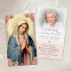 Keep the memory of a loved one close with this custom personalized religious prayer card featuring an image of the Virgin Mary and pink roses on one side and a cherished photo, the sentiment FOREVER IN OUR HEARTS in elegant script, name and dates and the editable "Hail Mary" prayer you can change to a bible verse, meaningful custom message or poem accented with a simple cross. It makes a meaningful keepsake to share at a funeral, memorial service, visitation, wake or Celebration of Life and offers comfort and a lasting tribute for family and friends. Its small and portable size of 3.5x2" (wallet-sized) makes it convenient for loved ones to carry it with them as a reminder of your loved one’s life and spirit. Personalization makes each card unique.