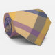 Se verá genial en esta corbata dorada, púrpura y azul.