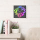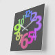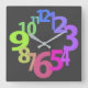 Reloj de pared acrílico cuadrado con números coloridos.