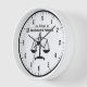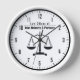 Diseño de escalas de justicia en reloj de pared. ¡Genial para los estudiantes de derecho o para todos los tipos que hay por ahí para celebrar la ley! *** Se puede cambiar el color de fondo.