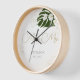 Un reloj de boda elegante y personalizado con temática tropical, con una hoja tropical monstera con dos ramas pequeñas de orquídeas blancas dibujadas a mano, delicadas hojas de mirto apiladas digitalmente con oro y elegante tipografía boda clásica. ... Un lindo regalo de boda personalizado para una pareja joven -y joven en el corazón- que celebra su primer, tercer, quinto, 10, 25 o 50 aniversario.
