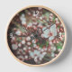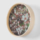 Reloj floral con una foto de una hermosa rama de ciruela en flor sobre un fondo verde oscuro. Un toque de vibración primaveral a la decoración de tu casa, un encantador regalo de temporada para tus seres queridos.
