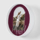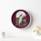 Un recuerdo especial incluye tu foto de boda en un diseño de arco elegante con el texto "Casados" en texto chic junto con tus nombres y fecha de boda en un reloj de pared de fondo burdeos. Regalo hermoso para tu familia y un recuerdo fabuloso para mostrar en tu propia casa. El color de FONDO se puede cambiar. ¡MÁS COLORES en nuestra colección!