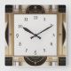 reloj art deco, reloj art nouveau, dorado crema negra, líneas simétricas geométricas de los años 20, estilo sofisticado elegante de 1920, lujo dorado chic, lujo retro vintage, arcos elegantes de semicírculo, reloj cuadrado glamoroso glamuroso y elegante o"