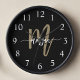 Haga una declaración con el reloj grande del nombre de monograma de escritura moderna en negro y oro. Este gran reloj de pared combina lujo y funcionalidad con un elegante diseño negro con un audaz monograma dorado en una letra de escritura moderna. Con su elegante diseño, mejora a la perfección cualquier sala de estar, oficina o dormitorio, al tiempo que proporciona un cuidado de tiempo claro. El monograma personalizado añade un toque único y elegante a su espacio, haciéndolo el regalo perfecto o la adición a su decoración.