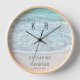 Este reloj de boda tropical y chic cuenta con una playa de arena con un monograma/iniciales en la orilla del océano azul turquesa. Perfecto para una boda de playa/destino/costa/costa. Personalízalo según tus necesidades. Puedes encontrar productos coincidentes en mi tienda.