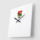El reloj no se puede colgar en la pared porque tiene un defecto en la parte trasera.
