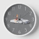 Vintage 1940/50's blanco Buick convertible (se hizo famoso en la película Rainman) con chica de pelo rojo con pinzas colgado en la puerta, con la cara de reloj blanco en fondo gris medio